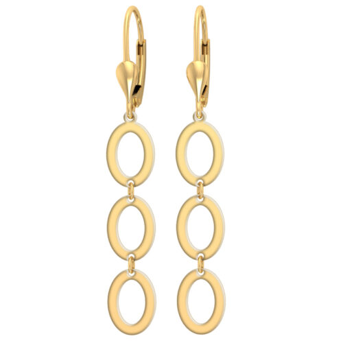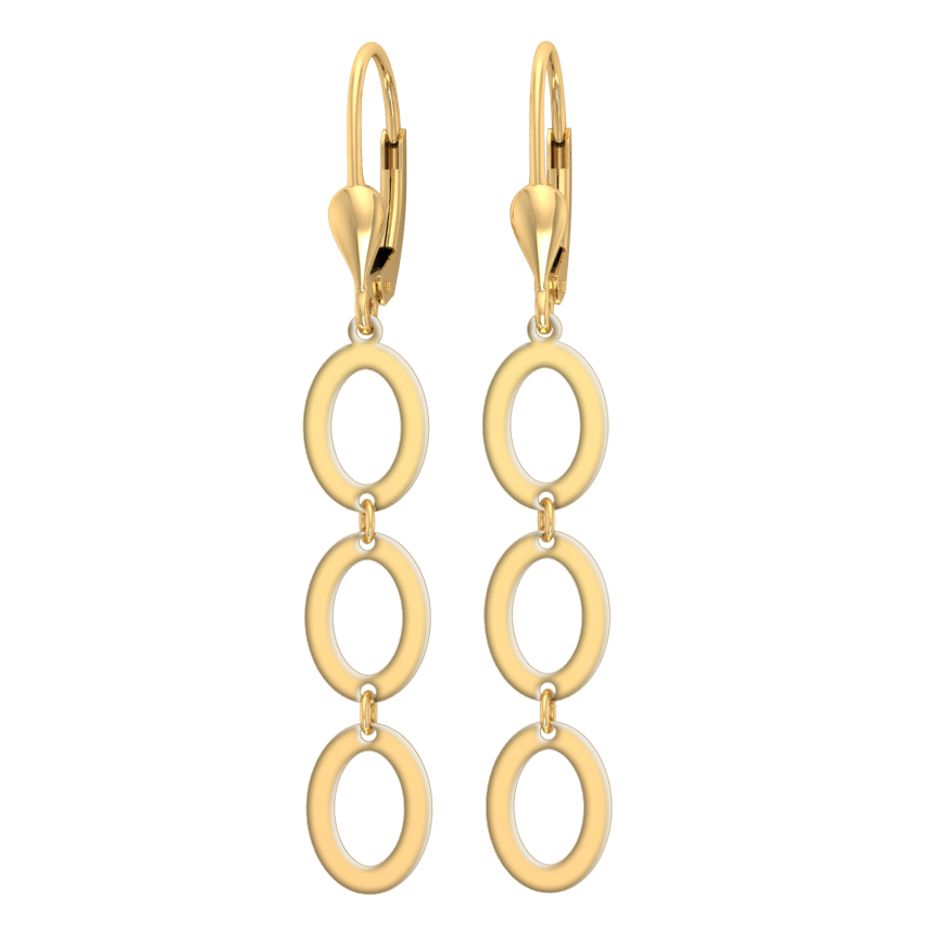 Te złote kolczyki z trzema owalami, ułożonymi pionowo jeden nad drugim, to elegancka biżuteria, która subtelnie podkreśla urok każdej stylizacji. Wykonane z najwyższej jakości złota próby 585, kolczyki są polerowane na wysoki połysk, co nadaje im lustrzany blask.