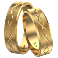 Płaska, polerowana powierzchnia kontrastuje z precyzyjnym nacięciem, co razem tworzy wyrazisty, ale nieprzytłaczający wzór. Dzięki temu obrączki prezentują się nowocześnie, a jednocześnie zachowują klasyczny charakter. Złoto o próbie 585 zapewnia wysoką trwałość, co czyni ten model idealnym wyborem na całe życie.
