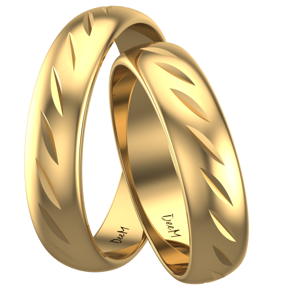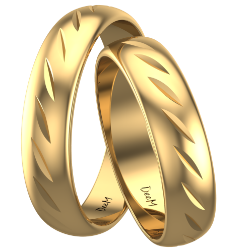 Obrączki wykonane są z najwyższej próby srebra 925, które pokryte zostało 24 karatowym złotem, dzięki czemu do złudzenia przypominają obrączki wykonane w całości ze złota. Powłoka złocenia wynosi aż 2 mikrony i dodatkowo została zabezpieczona bezbarwną warstwą ochronną. Taka metoda wykonania zapewnia wysoką trwałość. Dodatkowo obrączki ozdobione są delikatnym wzorem wykonanym nożem diamentowym. Metoda ta sprawia, że nacięcia przepięknie się mienią rozświetlając całą kompozycję. Ale słowa nie opiszą ukrytego piękna tych obrączek – symbolu Waszej miłości.