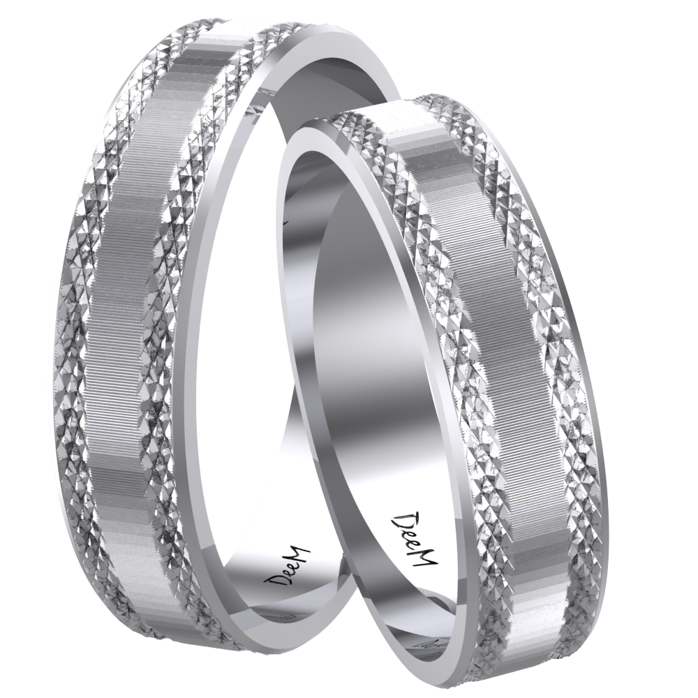 Prezentujemy obrączki wykonane są ze srebra najwyższej jakości o próbie 925. Dodatkowe pokryte są warstwą białego rodu, który nadaje im metalicznego odcienia zbliżonego do białego złota oraz zapewnia wysoką trwałość. Powierzchnia obrączek jest matowiona, co tworzy elegancki satynowy połysk. Dodatkowe żłobienia w postaci dwóch ozdobnych linii wykonane frezem diamentowym podkreślają piękny blask srebra. Wzór nadaje obrączce lekkości i oryginalności. Ale słowa nie opiszą urody tych obrączek – symbolu Waszej miłości.