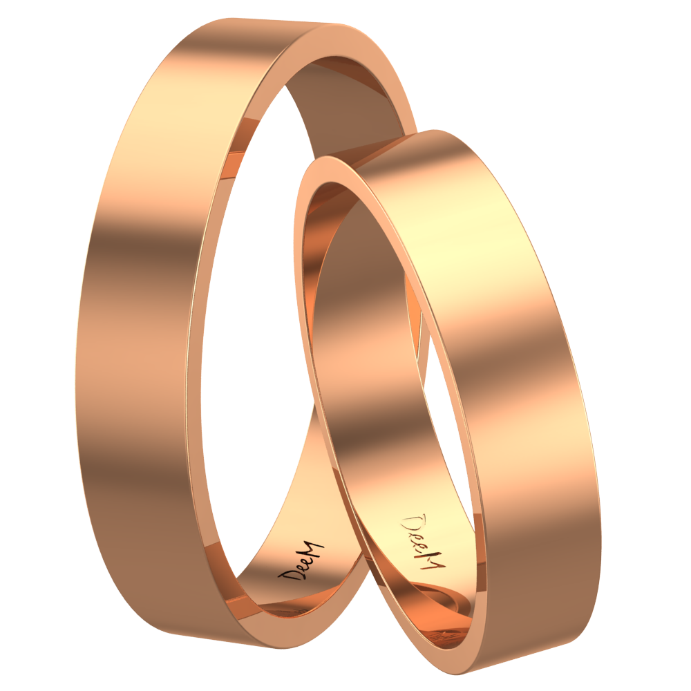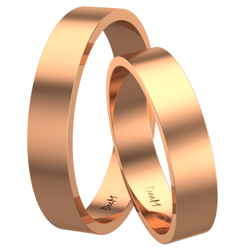 Prezentujemy klasyczne obrączki ślubne o płaskim profilu. Wykonane są w całości z czerwonego, 14 karatowego złota. Ich powierzchnia została dokładnie wypolerowana, nadając im pięknego blasku. Ten prosty i minimalistyczny model zachowa ponadczasowe piękno przez całe życie.