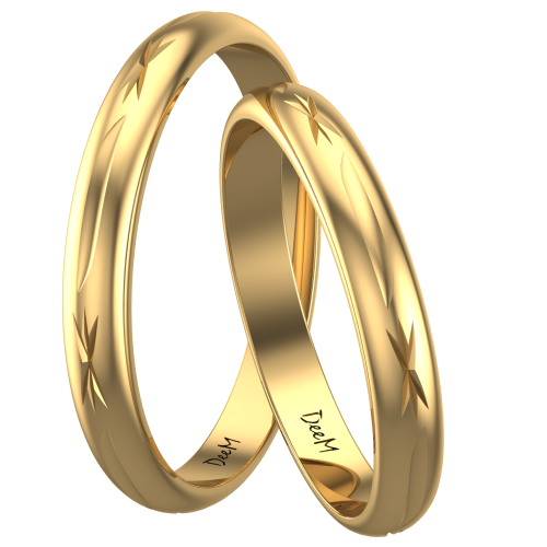 Półokrągły profil prezentowanych obrączek nadaje im klasycznego wyglądu lecz diamentowane zdobienia – nuty nowoczesności. Wykonane są z wysokiej jakości, żółtego, 8 karatowego złota, które zapewnia trwałość i daje pewność, że obrączki będą służyły Państwu tak długo jak żywa będzie miłość. Indywidualny grawer, który wykonamy na Państwa życzenie wewnątrz obrączek będzie przypominał o dniu zaślubin.
