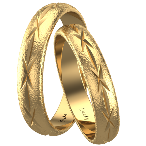 Półokrągły profil prezentowanych obrączek nadaje im klasycznego wyglądu lecz diamentowane zdobienia – nuty nowoczesności. Wykonane są z najwyższej jakości, żółtego, 14 karatowego złota, które zapewnia trwałość i daje pewność, że obrączki będą służyły Państwu tak długo jak żywa będzie miłość. Indywidualny grawer, który wykonamy na Państwa życzenie wewnątrz obrączek będzie przypominał o dniu zaślubin.